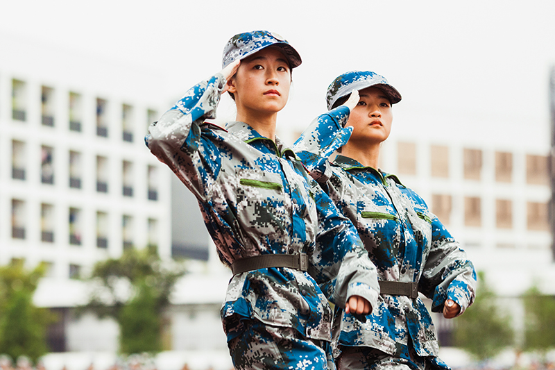 In the face of the dawn, new students were on the playground and began the drill exercise on that day while the instructor ordered them.They lift their chest and abdomen, looking forward, with their hands clinging to their trousers and feet separated,which was the strictly maintained posture for all of them.