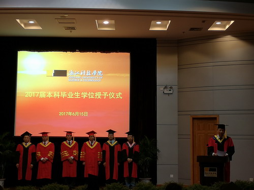 June 15th afternoon, the 2017 undergraduate degree awarding ceremony of College of Civil Engineering and Architecture was held ceremoniously in the West lecture hall of the library. The 2017 graduate of the college, full of joy, ushered in the celebration of his life.