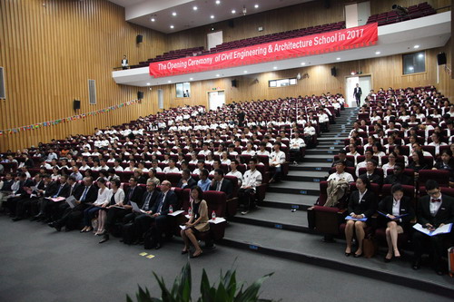 Undergraduate freshmen , Graduate student representative and the representatives of the new students abroad(Yanick Suleno Vieira) made statements respectively. Students with a "walk to a new classmate" in English poetry to the freshman students of high grade classmates greetings, French song chorus "friendship" expressed by enduring as the universe project committee thanks and welcome.