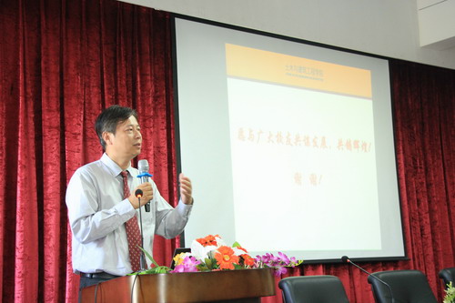 In civil engineering and architecture school, there was a meeting of the current students and alumnus. Mr. Zhan gave a speech of the celebration.