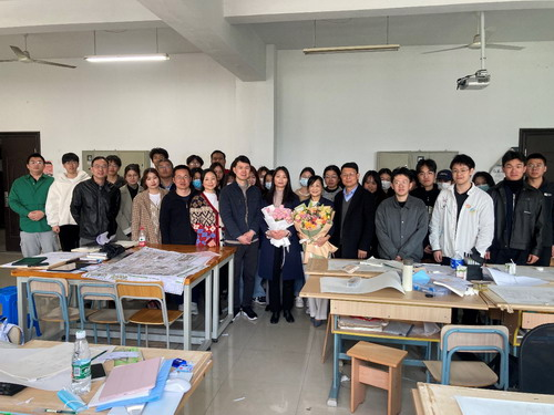 When Teacher Guo declared the conclusion of the lesson, the students applauded enthusiastically. Teacher Shen Shusheng, secretary of the academy's party committee, personally presented Mr. Guo with flowers and offered a speech. First and foremost, Secretary Shen praised Mr. Guo for his significant contributions to the School's development over the last 10 years, particularly his selfless devotion to the profession as head of the Department of Urban and Rural Planning. Second, he stated that Mr. Guo is concerned with the development of the college and urban and rural planning professions after his retirement, and is particularly concerned with the development of new instructors.