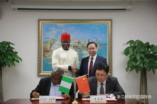 Chimezie Okoma Ogu praised our school's worldwide education accomplishments. He stated that the Nigerian Consulate General in Shanghai would vigorously support cooperation projects between our institution and Nigerian universities such as the University of Nigeria, and that he intends to encourage more Nigerian students to study and work in China. Charles Yigewei highlighted the Nigerian university development method and successes. He stated that his visit to Zhejiang University of Science and Technology is a significant opportunity, and he hopes that the two sides may collaborate in teacher-student exchanges, cooperative research, joint training, and other areas.At the meeting, Li Qipeng and Charles Yigewei, as authorized representatives of the two institutions, signed the cooperation framework agreement. The Nigerian group visited the Colleges of Construction and Engineering and Biochemistry to examine potential collaboration in related subjects.