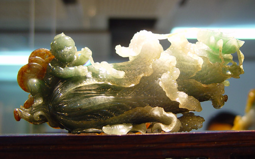 This is jade carving which is the most expensive one among those handicrafts.The work named Ruyi and symbolized as good wishes to the life. It always was kept by the imperial family and dignitary: