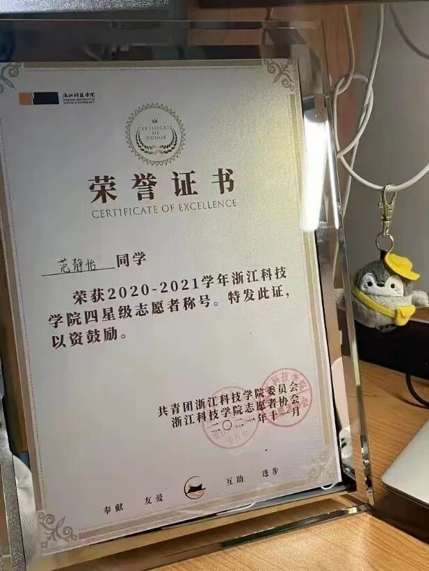 范静怡累计参加志愿活动20余次,志愿时长300h。曾获实践类建工之星、四星级志愿者、优秀青年志愿者和学生社团活动先进个人。
