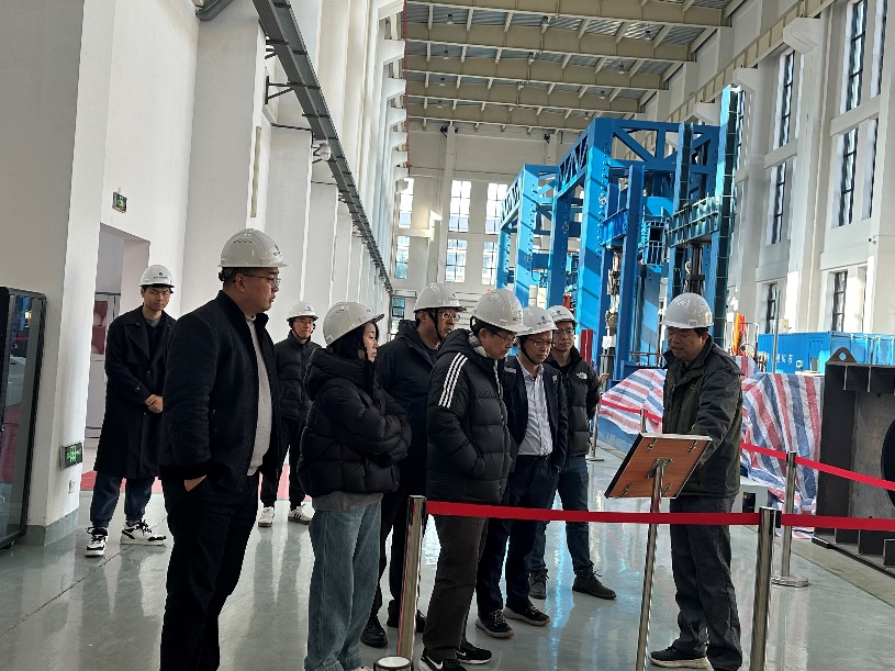 在胡皓所长的引导下,金辉书记一行首先参观了青山湖试验基地的先进实验室。基地内配备了一系列国际国内领先的大型试验设备与精密检测仪器,能够模拟和完成各种复杂、高难度的工程结构与材料试验,其雄厚的硬件实力与严谨的科研管理给学院一行留下了深刻印象。